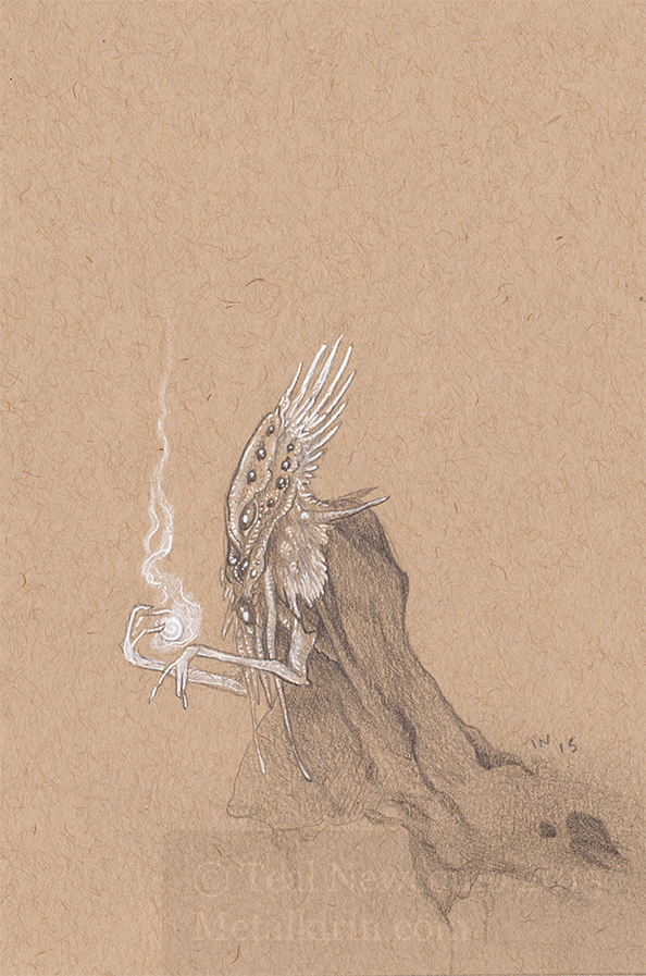 Graphite, white pencil and gel pen on 4"x6" toned sketch paper.