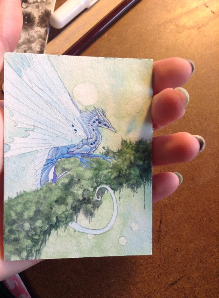 2.5" x 3.5" ACEO format watercolor/multimedia painting on thick illustration board.