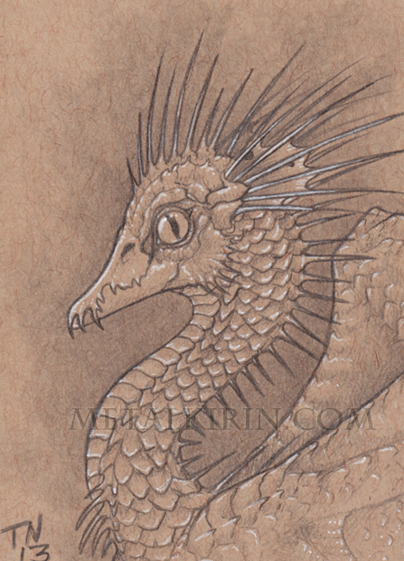 2.5" x 3.5" ACEO graphite and gel pen drawing on brown paper. Shading and detail are much nicer than what you can see on your screen. Drawing is not watermarked. Shipped in a waterproof sleeve, and protected between sheets of stiff cardboard.