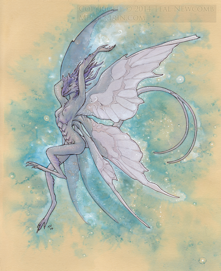 Paper measures 8.5" x 10.5" including a small margin around the sides. Image is cropped a bit here. Watercolor, white gel pen, and white ink on tan stonehenge paper.